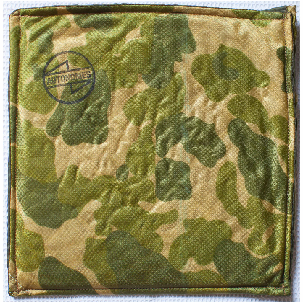 Capítulo aparte merece la presentación del disco. La verdad es que es un tanto bizarrota, ideal para los que se compran los discos para vacilar y pensar que son cools y trendys. Ni más ni menos que viene en un envoltorio con tela de camuflaje, ideal para John Rambo; es un poco feo, pero hay que reconocer que un rato útil, ya que los dos vinilos van a estar perfectamente protegidos de las inclemencias del tiempo. Los objetos estos van a estar más calentitos que yo, que vivo en un cuarto que es lo más parecido a un micro clima de Groenlandia. El disco además incluye una pegatina de una especie de soldado de la primera guerra mundial, y la información del disco en forma de manual de instrucciones de una figura de acción.