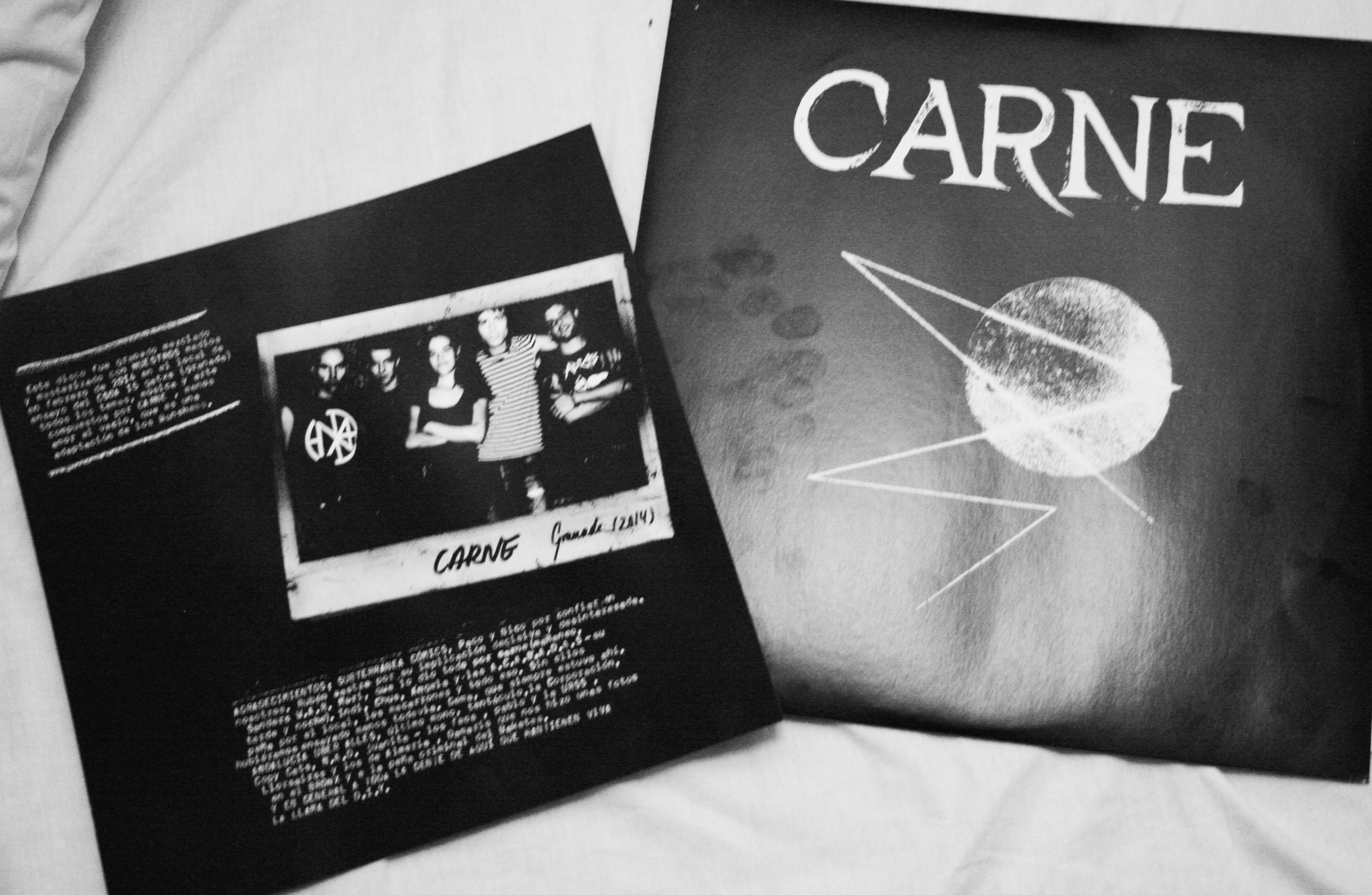 Después de sorprendernos con su maqueta colgada en bandcamp y de dejarnos con la boca abierta con el conciertazo que dieron en Junio en el Rock Palace, Carne, grupo formado en Granada hacia el 2011, han sacado un LP en vinilo que no contiene ni más ni menos que las canciones de su maqueta en formato plástico editado por Subterránea y La Corporación, sello tras el que se esconden los miembros de La URSS, con los que comparten bajista (Miguel) y guitarrista (Jorge).