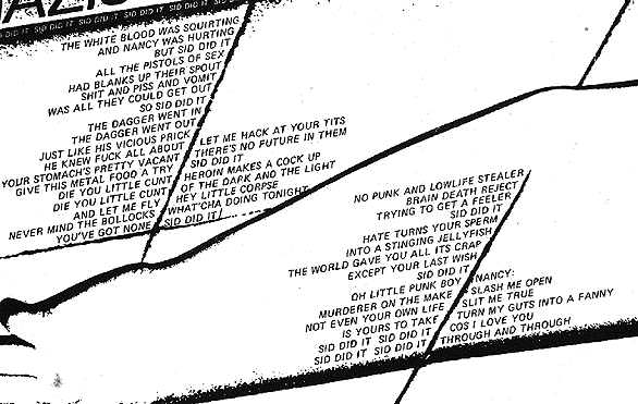 El segundo tema, también de 1979, es obra de lo Surgeons británicos (hay varias bandas con el mismo nombre, no confundirse). Lo cierto es que no he podido recopilar mucha más información. Salió en un single en el que la cara b, Breaking Rocks on Rikers Island, hacia referencia a la prisión neoyorkina donde fue mandado Sid, tras ser acusado del asesinato de Nancy. Más corto que el anterior, este es mucho más machacón, y de orientación contraria en su lírica. Es decir, proclamando la inocencia de Vicious. Juzgad vosotros mismos, como si de un concurso televisivo se tratase, y mandad a Sid Vicious al cielo o al infierno, donde descansan eternamente las insignificantes estrellas Pop.