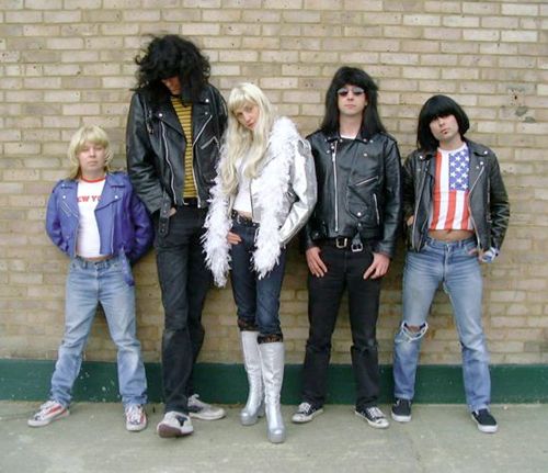 Para que quede claro, no vamos a hablar de las toneladas de bandas que intentan sonar a la copia de la copia de la copia de Ramones, ni de las que les versionean ocasionalmente, ni de las que alguno de sus miembros toca con las piernas separadas y las rodillas juntas, ni de las que visten camisetas a rayas talla bebe, si no de las que solo tocan sus canciones y se caracterizan físicamente como ellos (o lo intentan). Y no todas, porque hay cientos, solo las más pintorescas.