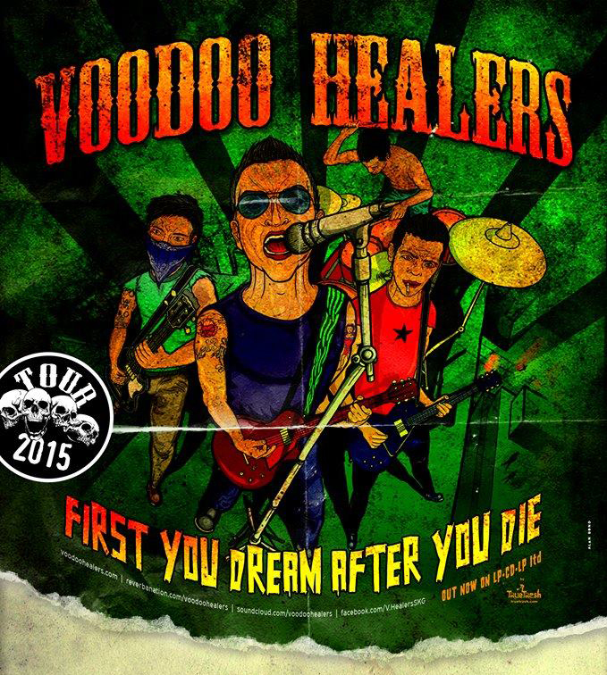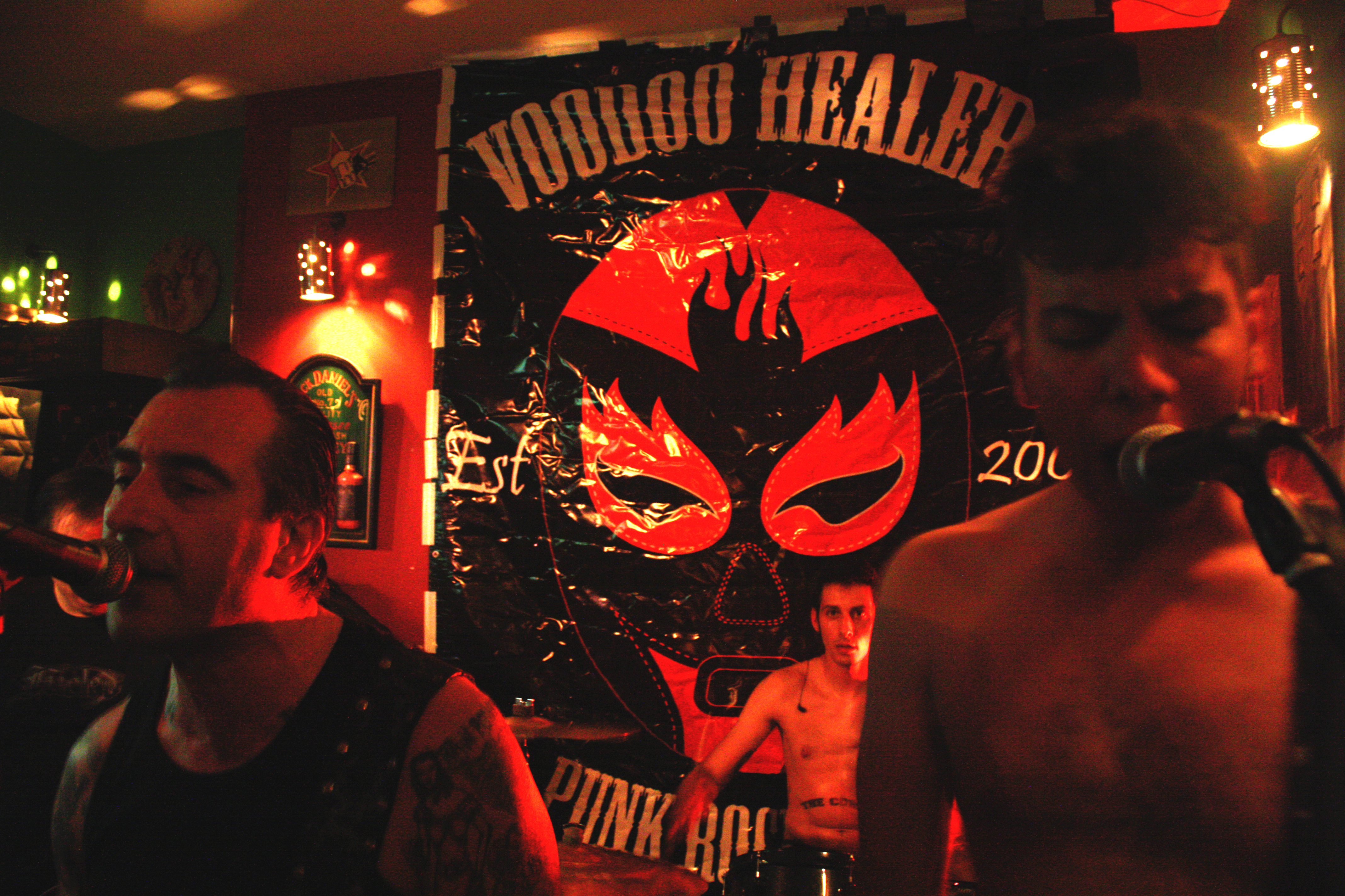 Voodoo Healers son una banda de Tesalónica que empezó sus andaduras allá por el 2003, cuando «Fast» Chris Healer consiguió reunir a las personas aptas para su proyecto. Como es lógico, algunas de estas personas han ido cambiando a lo largo de estos años. Tienen tres discos, y ahora comienzan su enésima gira europea con algunas fechas previas a lo largo de Grecia, para presentar el último de ellos. Anoche tocaron en su ciudad, y aunque bien sabe quién me conoce que en Madrid no iría a un concierto de este royo ni jarto grifa, aqui las reducidas opciones de ver conciertos afines a mis intereses me hacen tomar decisiones a la desesperada. No obstante debo decir que no me arrepiento en absoluto de haber vencido la pereza que me caracteriza, para ir a ver a estos punkrockers griegos.