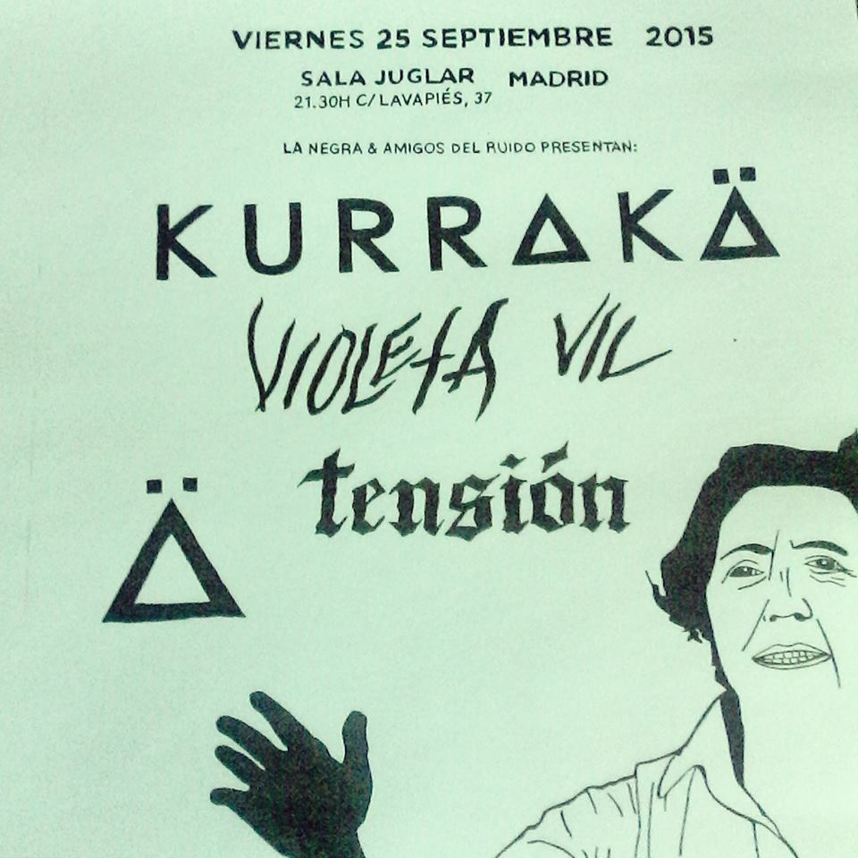 Algunos rumores en las redes sociales nos hicieron pensar en la posibilidad de quedarnos sin entrada, pero aunque la asistencia fue bastante buena en mi opinión, no hubo problema para entrar. Una vez más el botón de «asistiré» fue apretado con demasiada ligereza. Tensión ya estaban empezando para cuando atravesabamos la puerta de entrada. Aunque se situan bajo la etiqueta del Hardcore-Punk, y no desacertadamente, coincidí con otras personas en que tienen una jugosa influencia del sonido Oi. Esto ya les convierte en especial objeto de mi interés. Tenía verdaderas ganas de oírles en directo porque la maqueta consiguió despertar mi curiosidad. Había que ver el origen de esa voz desgarrada y furiosa. Efectivamente sus temas son impactos directos en puntos marcados. Camina o Revienta, Tu ciudad o Tensión estan destinados a convertirse en himnos que vocear al oído de tus amigos. El anuncio de un tema nuevo y los primeros acordes del Ya esta bien, de La Uvi, queda como el guiño final de una banda a su origen castizo.