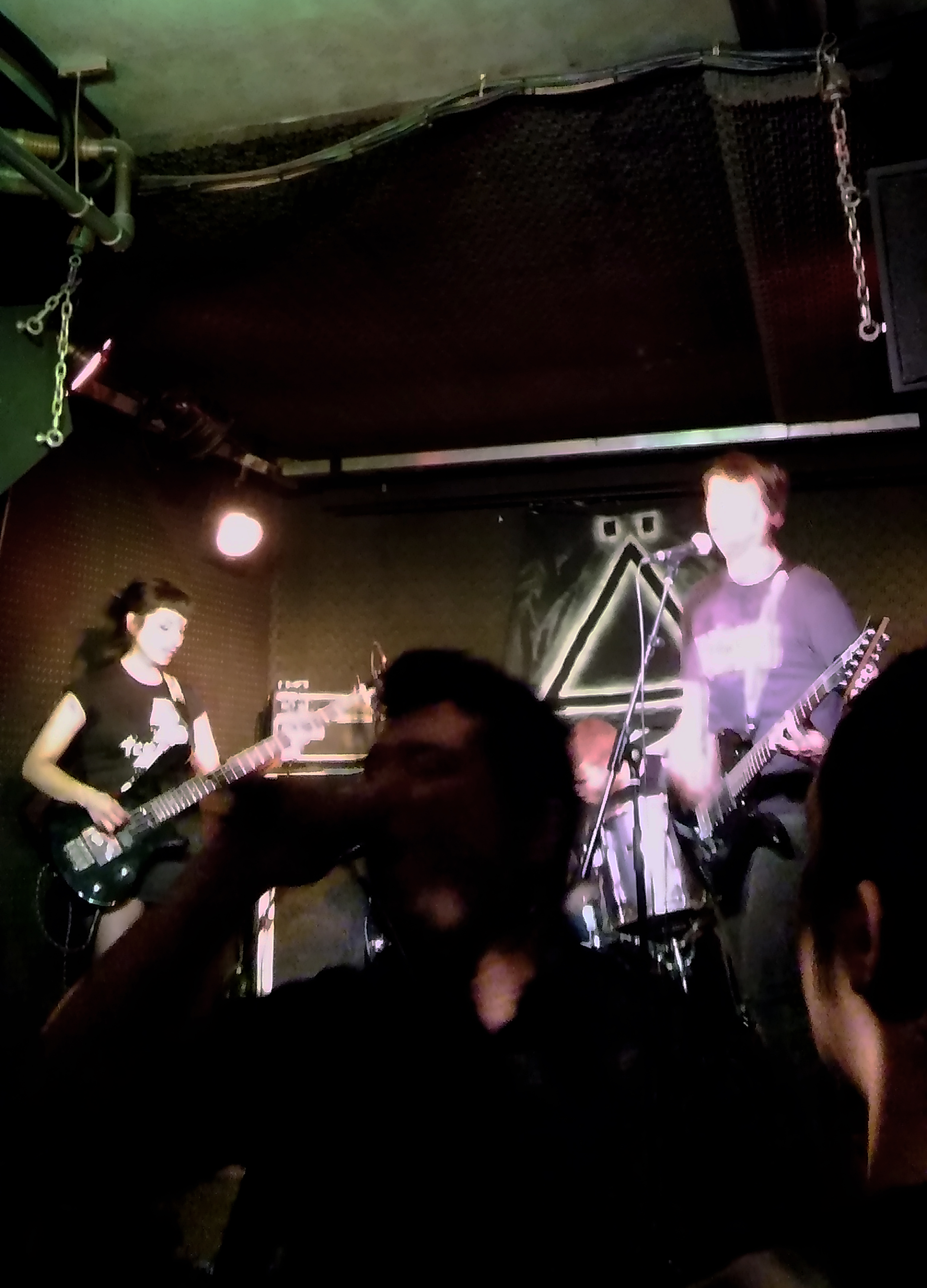 Kürraka hicieron su repertorio en apenas veinte minutos. Esto, unido a mi capacidad para entablar conversaciones sin fín, hizo que solo llegara para ver su segunda mitad. Su sonido cortante y agresivo me consiguió sacar las pocas fuerzas que me quedaban, aunque es verdad que tenía en mente un poco más de tenebrosidad en sus composiciones. Quizá me resultaron un poco sobrias y apresuradas. En cualquier caso dieron una lección de imponente presencia sobre el escenario.