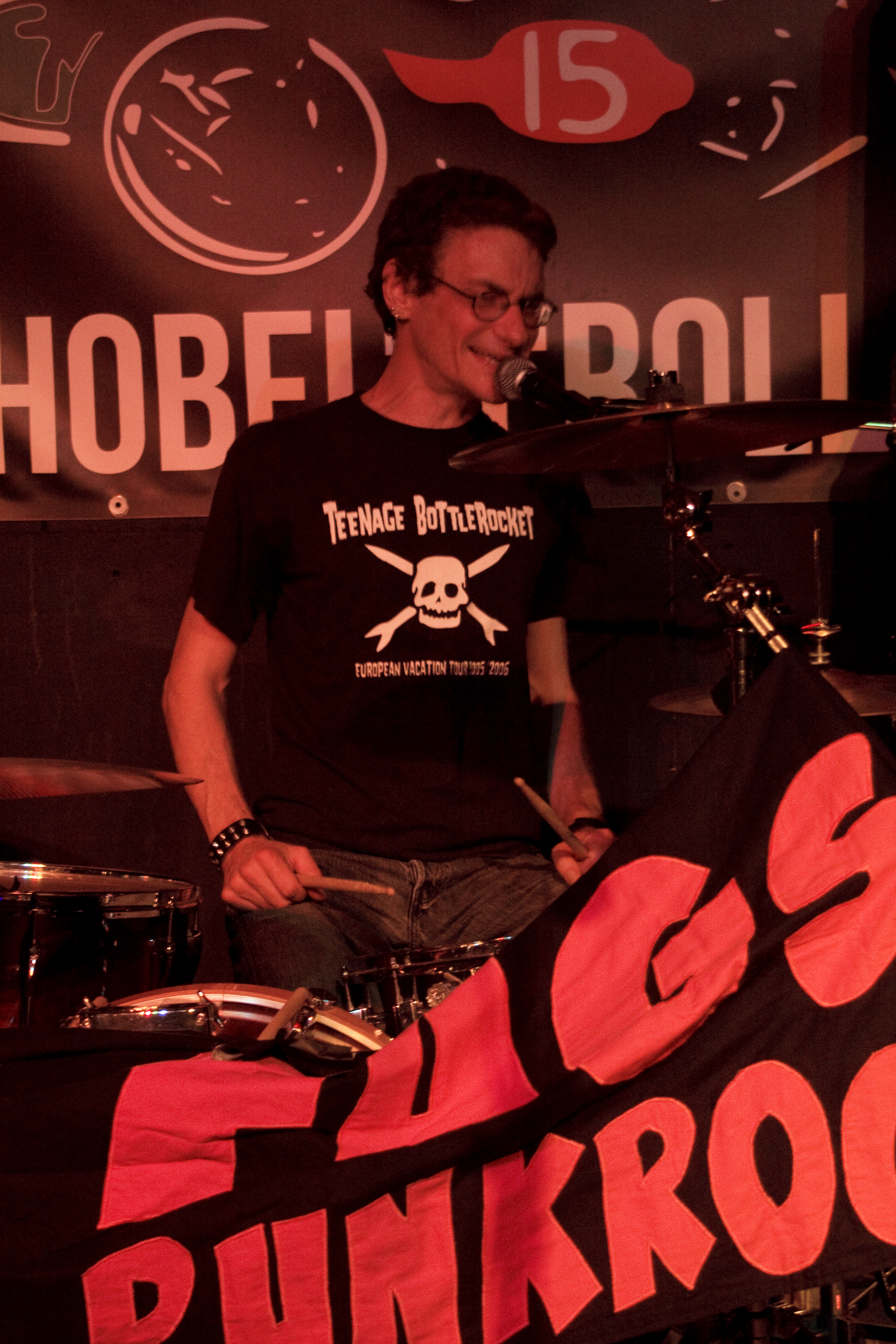 Los Escalator Haters subían por segundo día consecutivo al escenario para cerrar la noche. Esta vez el repertorio se alargó considerablemente añadiendo al que hicieron el día anterior, un puñado de temas nuevos. El ambiente fué más festivo e incluso algún espontáneo se animó a berrear por el micro de Stan. Las versiones de Ramones volvieron a sonar con el, muy a mi pesar, consiguiente alboroto por parte de la audiencia. Ni que decir tiene que nosotros disfrutamos de sus temas más emblemáticos, como «She’s a runaway», «D.O.A», «I Do the Pop», «I’m Fantastic» y varios más de sus afilados, urgentes y melódicos latigazos. El cansancio acumulado hizo un poco de mella en el batería que luchaba como un titán por llegar vivo al final de cada tema. Era una noche especial y el merecido apoyo de su público local les aupó lo necesario para dar un gran concierto.