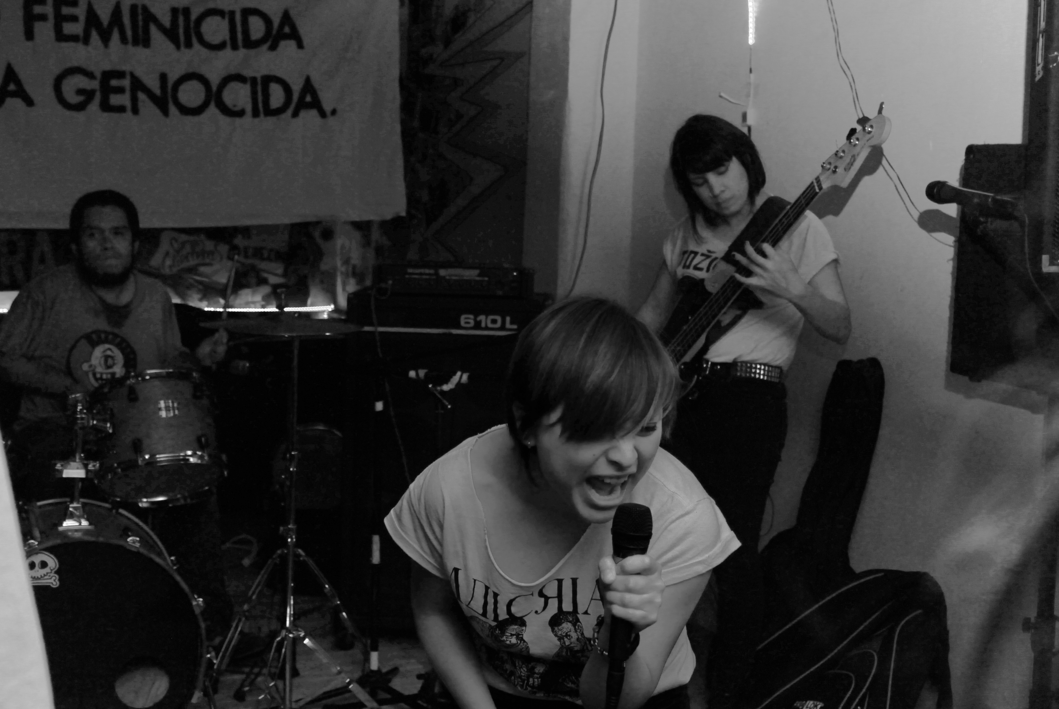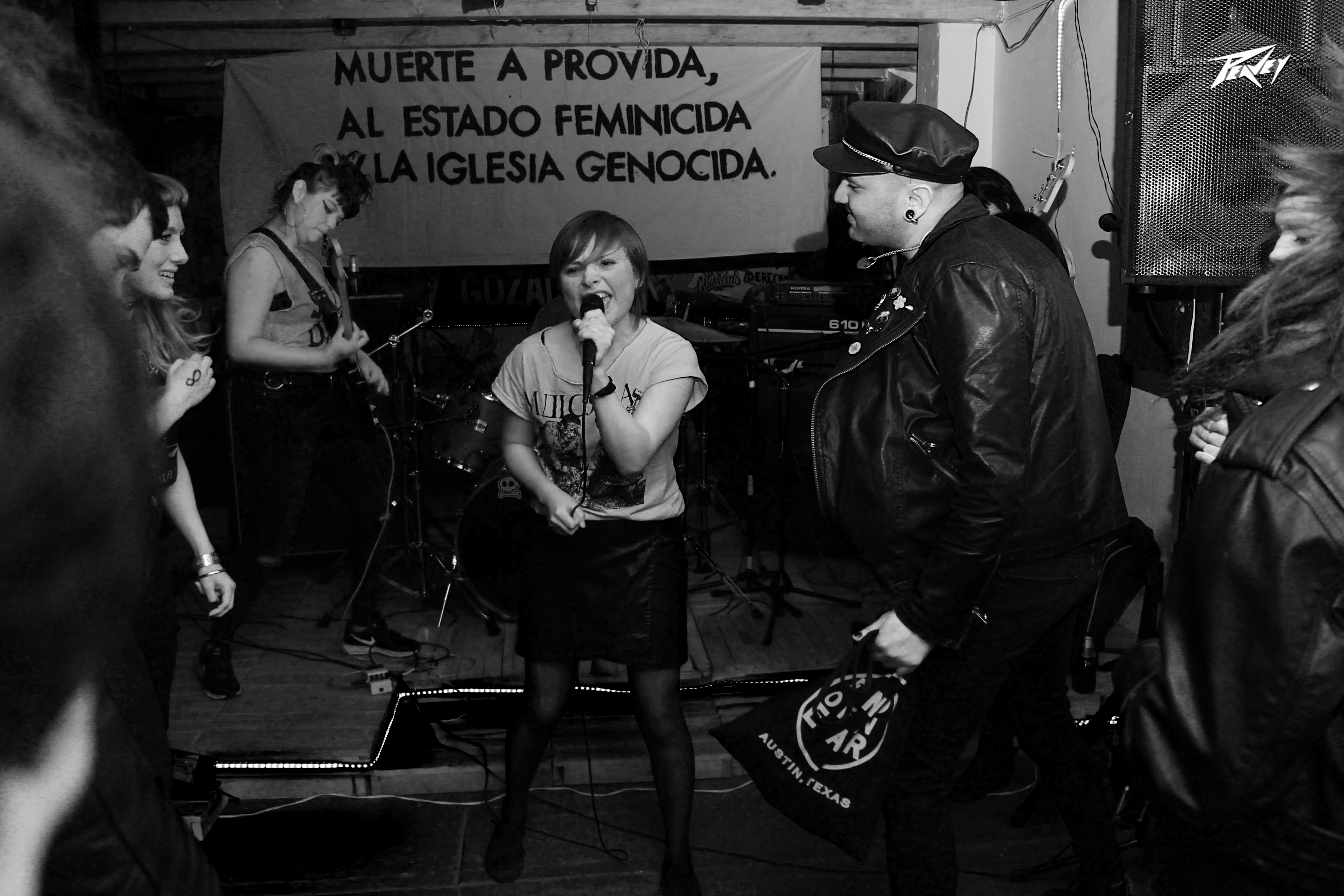 Punto Gozadera es un bar-restaurante donde se suelen hacer eventos de caracter feminista. En este mismo concierto se buscaba recaudar fondos para el colectivo Akelarre, de Jalapa (Veracruz), y su lucha en favor del derecho al aborto libre. Antes del concierto tambien se aprovechó para proyectar, en un espacio aparte dentro del mismo local, un pequeño documental sobre el inminente expolio que se va a producir en Venezuela, promovido por su gobierno «ecosocialista», bajo el críptico nombre de Arco Minero del Orinoco. Una catástrofe medioambiental que no pinta nada bien para los pueblos indígenas que habitan la zona, dicho sea de paso.
