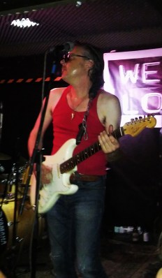 Después fue el turno de Andy California, el «redneck» bostoniano, cantante de The Monsieurs, que en solitario bajó del escenario con su guitarra, y su micro incorporado a ella, para interpretar media docena de temas (¿o eran el mismo todo el tiempo?) de Trash R’n’R con regusto a establo, entre un público intimidado por sus acercamientos lascivos y provocadores. Se subió a una mesa, rasgó las cuerdas mientras caminaba de rodillas, representó un sexual cabalgamiento sobre alguna que otra fotógrafa, y terminó su show cómico-musical sin mucha pena ni gloria. Un entretenido aperitivo mientras haces tiempo para el plato fuerte.