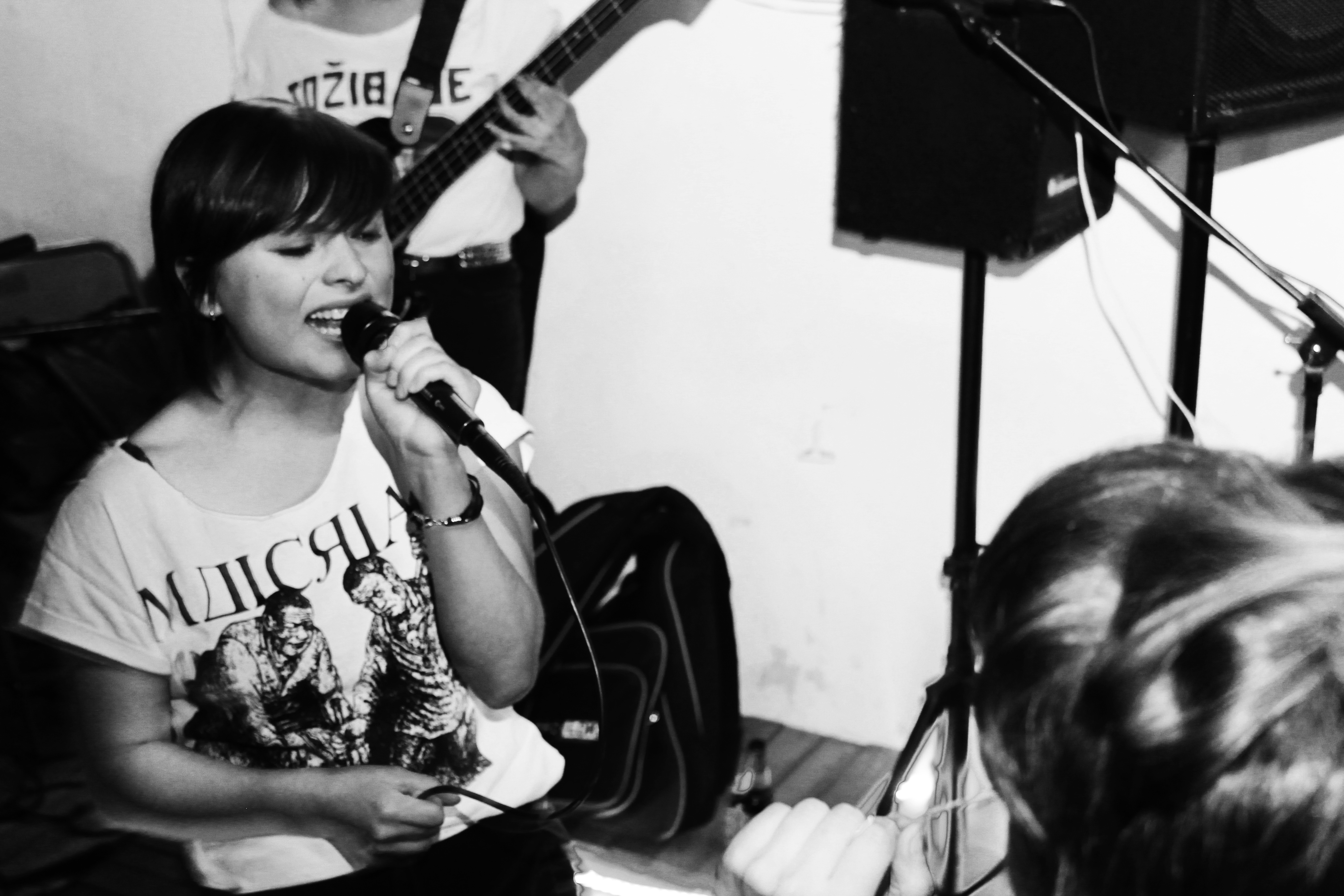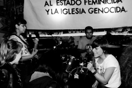 Fani: Si, creo que ha sido un primer paso. Antes cuando iba a tocadas, veía a bien pocas mujeres, y a la única que veía tocar tocar era a Nadia, cuando tocaba con Avichines la batería, ¿no? Que todas nos pusieramos a tocar, que hubiera más chavas yendo a las tocadas, simplemente que haya presencia ahí, se siente chido. Es verdad que cuanto más gente hay, empieza a haber más conflictos internos, porque hay más gente y más variedad de opiniones, y eso es una cosa que a huevo pasa. También me pregunto, -después del hecho de que haya mujeres, y que ya sea como más aceptado, ¿qué es lo siguiente?¿qué nos puede poner un reto a todos como grupo?- No tengo la respuesta. Abro Facebook, y cada quince días es -ah, la nueva banda no-sé-qué- Veo bandas que llegan, que tienen demos, que tienen bandcamp, y pienso -ya que logramos esto, ¿qué más podríamos lograr?¿estaría chido que se politizara más y tuvieramos otros acercamientos?- Pero también sé que para otra gente es un pedo más catártico, como lo que hablábamos ahorita. O más como de convivencia. No sé, pero si me pregunto qué otras cosas podríamos hacer, a partir de esto que ya hemos logrado.
